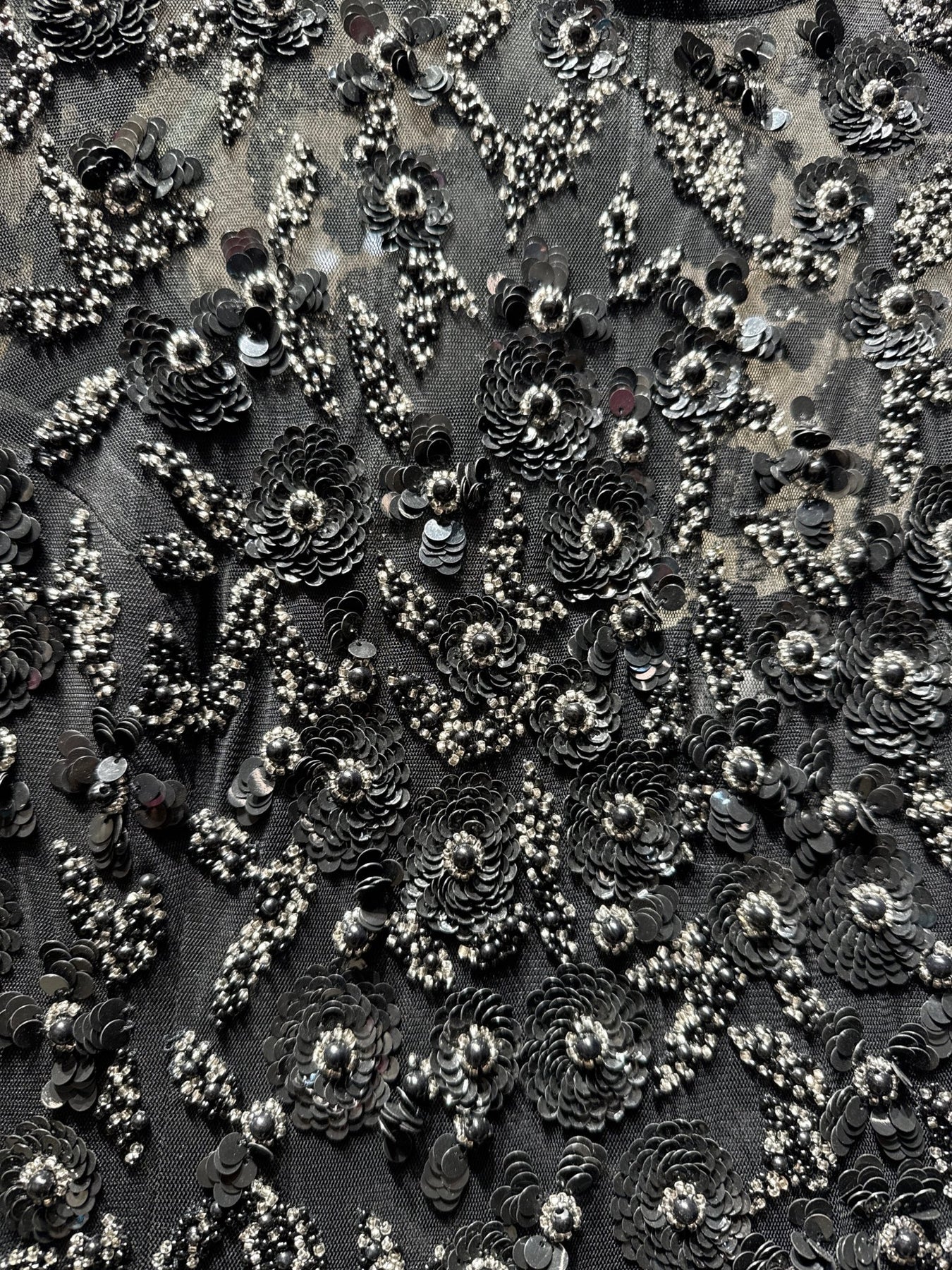 يعكس هذا الفستان أسلوب ماركة ماك دوغال الساحر في تقديم تصاميم كلاسيكية رائعة، فهو مصنوع من التول بأكمام واسعة بتصميم فراشة وتطريزات زهور رقيقة ويعد مثاليًا للتألق بإطلالة لا تُنسى في المناسبات الخاصة.