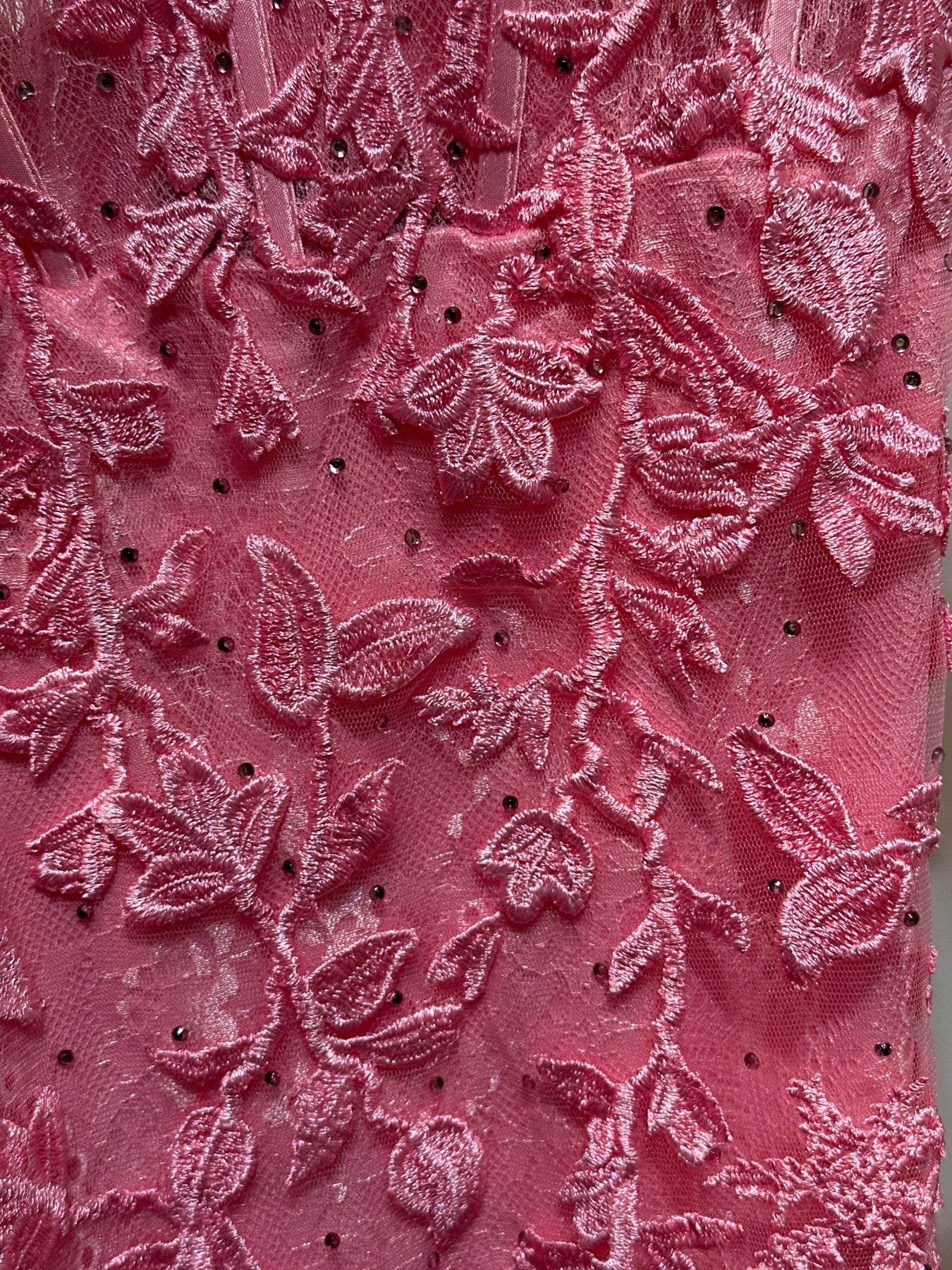 فستان بلمسة حالمة بلون وردي رقيق يعكس الرقي والأنوثة الراقية، صُمم بتفاصيل دقيقة تبرز جمال القَصّة وانسيابية القماش الفاخر.