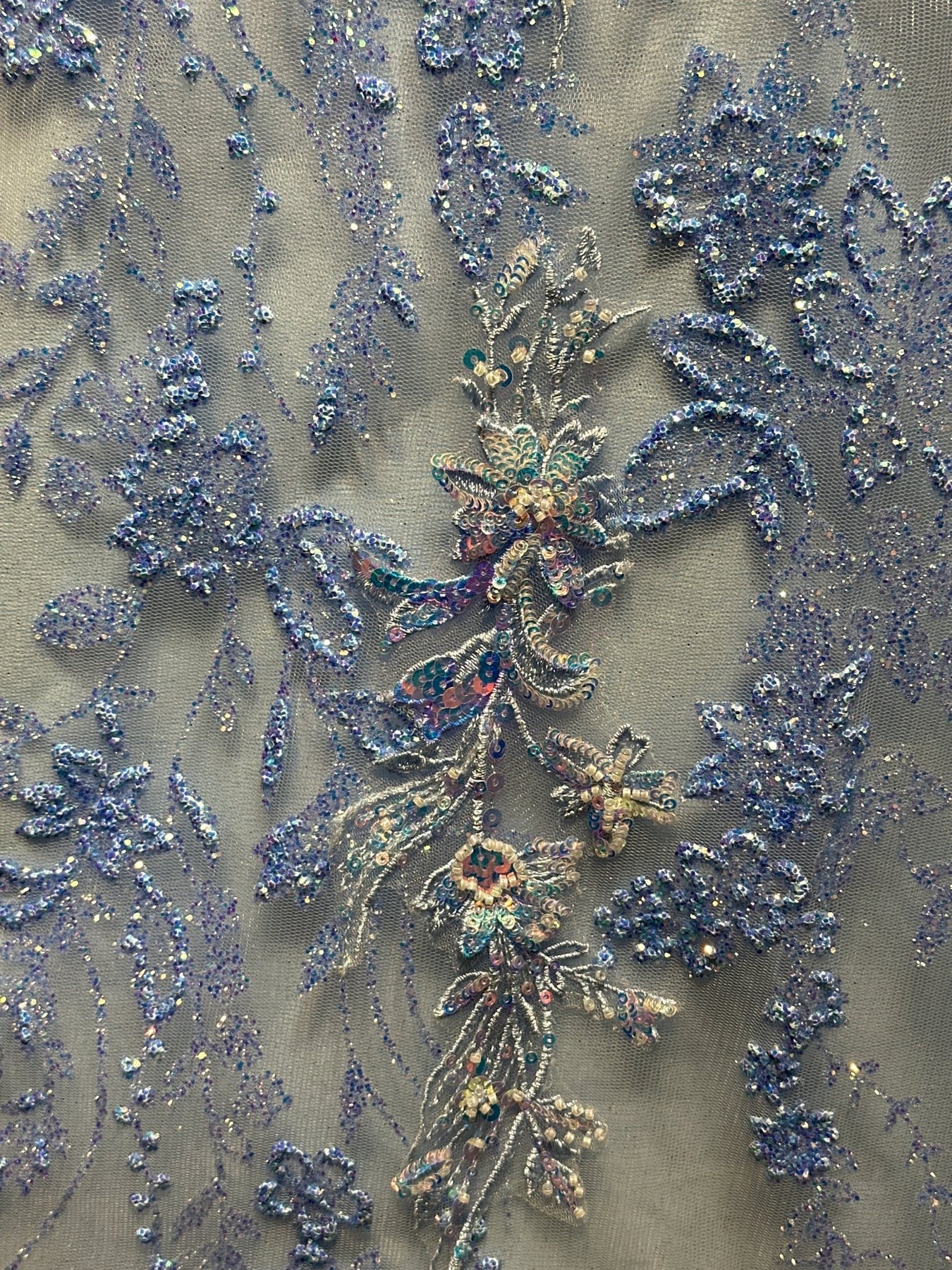 تألقي في مناسبتك القادمة بإطلالة تخطف الأنظار باختيارك هذا الفستان من ماركة أمارا مصنوع من خامة تل باللون الأزرق مزينة بورود الدانتيل من الأعلى يتميز بقصة أنثوية منفوشة بانسيابية تظهرك بإطلالة مثل الأميرات
