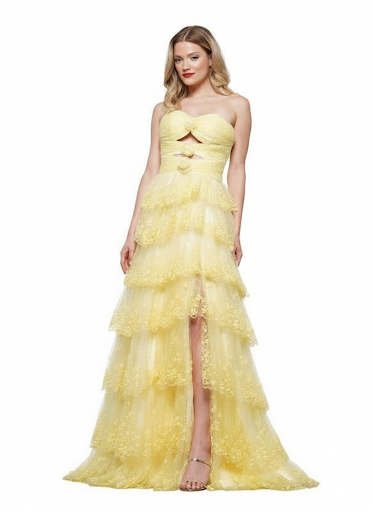 استقبلي مناسباتك بإطلالة تشعّ أناقة مع هذا الفستان الأصفر الأخّاذ
