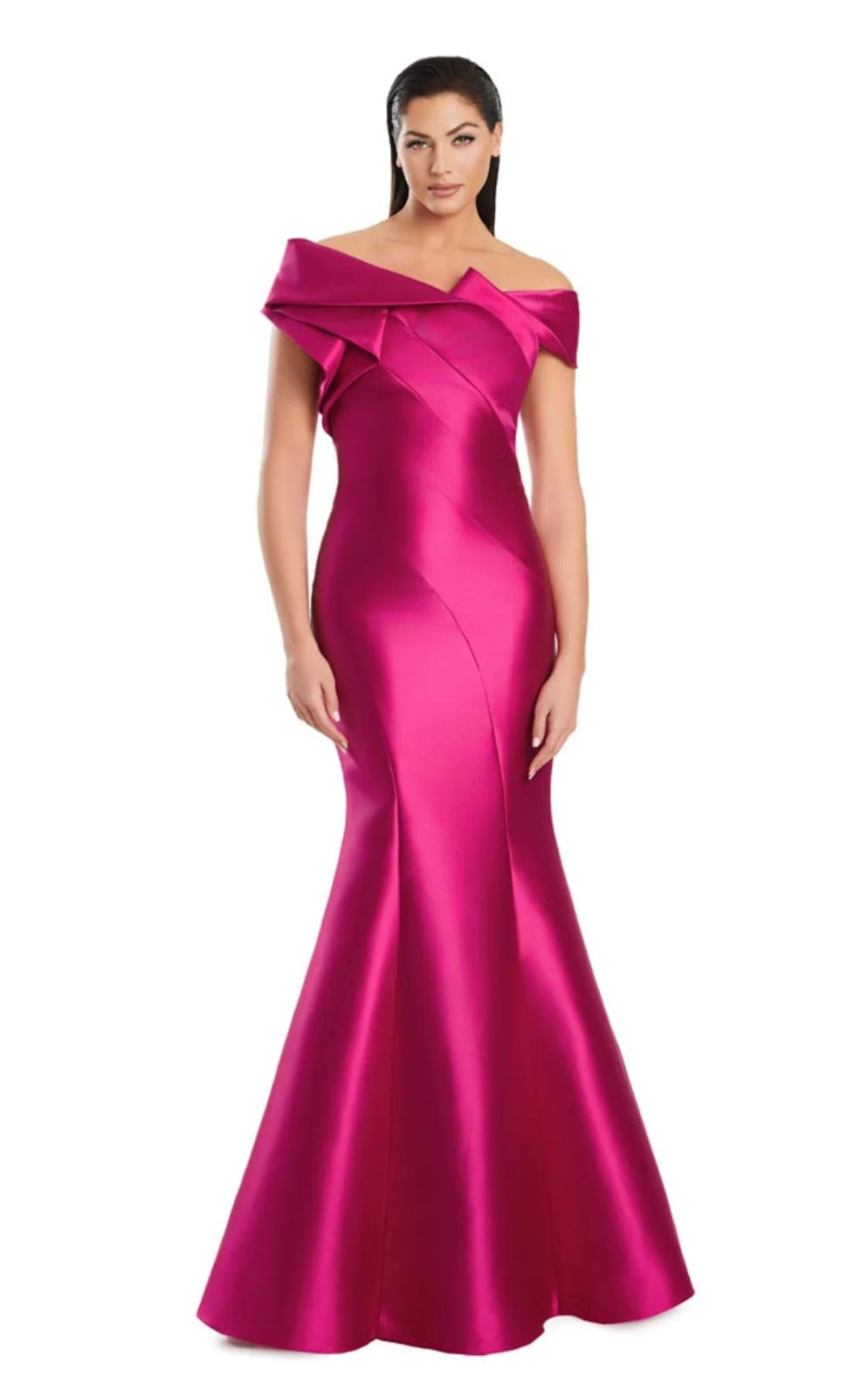 تصميم بكتف واحد يصرح بالاناقة، مع قصّة ضيّقة تبرز قوامك وتنورة فخمة بانسيابية درامية