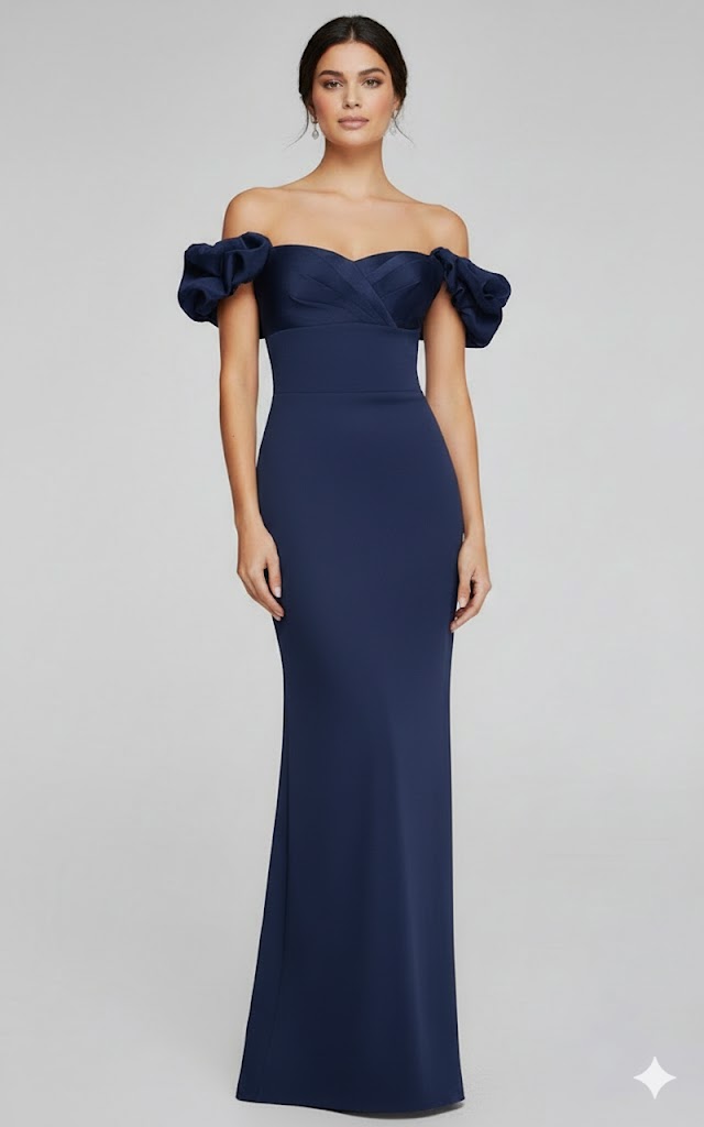 يتميز الفستان بقصة مفصلة تناسب قوامك وتصميم كورسيه بقبة قلب تضفي لمسة أنثوية وأنيقة. الأكمام المكشكشة الأوف شولدر تضيف لمسة مرحة وحيوية، بينما تنورة الطبقات المنسدلة مع الشق الخلفي الجريء تضفي دراما وجاذبية لا تُقاوم.