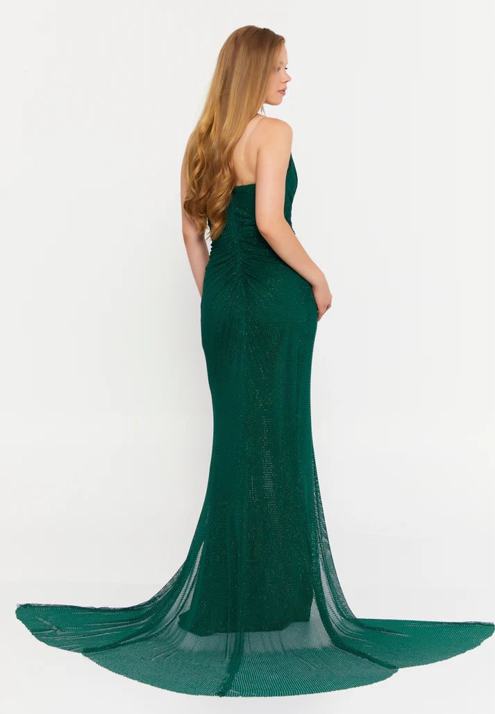 القصّة: تصميم طويل متدفّق يمنح الفستان حركة سلسة وانسيابية رائعة، مع خطوط ناعمة تبرز القوام بشكل أنثوي جذاب وتضفي لمسة درامية راقية عند كل خطوة