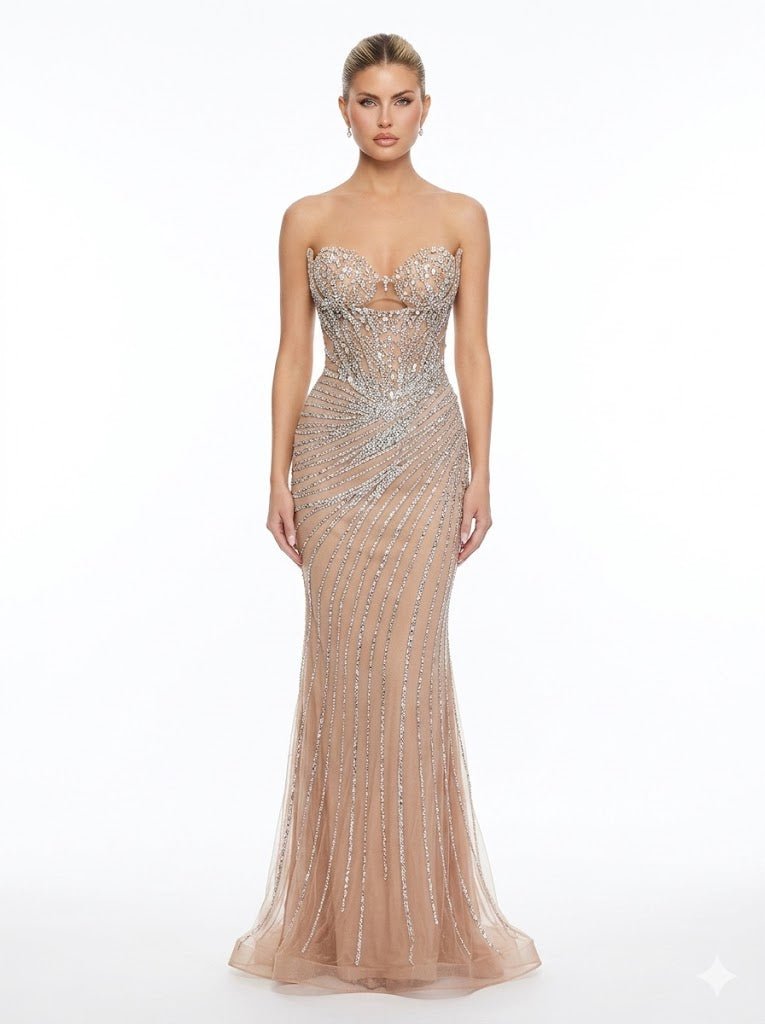 This collection is designed specifically for sisters seeking a dress that combines glamour, sophistication, and youthful elegance. The designs include shimmering evening gowns, flowing or fitted silhouettes, off-the-shoulder styles, one-shoulder designs, and mermaid silhouettes, all crafted from luxurious fabrics such as satin, sequins, tulle, and chiffon. The color palette ranges from gold, pink, and blue to silver, dark green, and coral, catering to a variety of tastes.