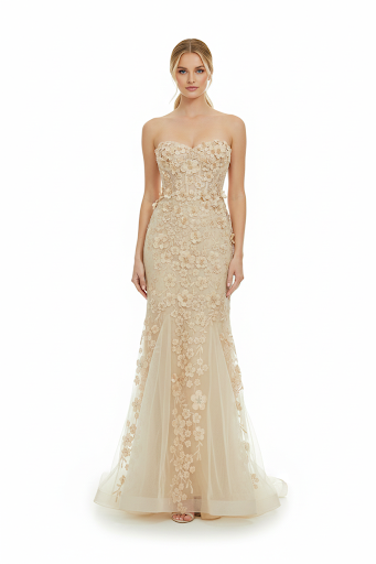 فستان سهرة أنيق بلون البيج الهادئ، مصنوع من قماش شيفون خفيف وناعم يمنحك انسيابية وراحة أثناء الحركة. الجزء العلوي مصمم بشكل أنيق مع تطريزات دقيقة تضيف لمسة فخامة، بينما التنورة تتدفق بانسيابية مع تفاصيل تمنحها حركة جذابة عند المشي. التبطين الداخلي من قماش بوليستر ناعم يوفر راحة إضافية، والسحّاب الخلفي المخفي يسهل ارتداء الفستان. تصميمه الكلاسيكي يجمع بين البساطة والأناقة، مما يجعله مثاليًا للسهرات والمناسبات الخاصة.