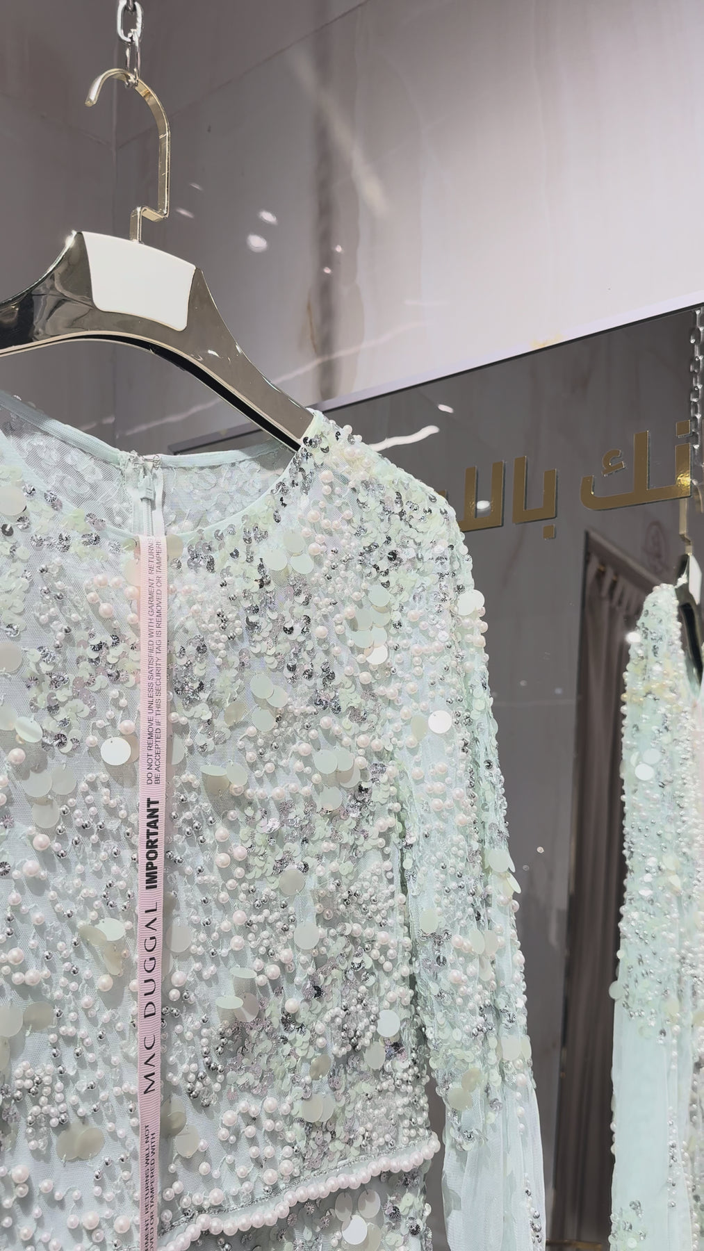 فستان سهرة فخم من ماك دوغال يتميز بتصميم أنيق يجمع بين البساطة الراقية والبريق الساحر. يبرز الفستان إطلالة أنثوية راقية بقصته الطويلة وأكمامه الشفافة التي تضفي حركة ناعمة مع كل خطوة، مع ياقة دائرية عالية تمنح مظهرًا متوازنًا وأنيقًا. صُنع من طبقة خارجية من القماش الشبكي المطرز بالتطريز الدقيق من الترتر واللؤلؤ المتناثر على كامل الفستان، ما يمنحه بريقًا متلألئًا يلتقط الضوء بلمسة فخمة في كل زاوية، بينما تحافظ البطانة المريحة على ثبات وانسيابية مثالية أثناء الحركة. كل تفصيلة في الفستان تعكس جودة ماك دوغال وتشطيبًا متقنًا، مما يجعله خيارًا مثاليًا للسهرات الكبرى والمناسبات الخاصة بإطلالة أنثوية ساحرة لا تُنسى. امتلكيه اليوم وأضيئي كل مناسبة بأناقتك الساحرة.